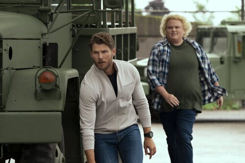 Travis Van Winkle y Fortune Feimster aparecen en una imagen promocional del capítulo 2x04 de la serie 'Fubar'.