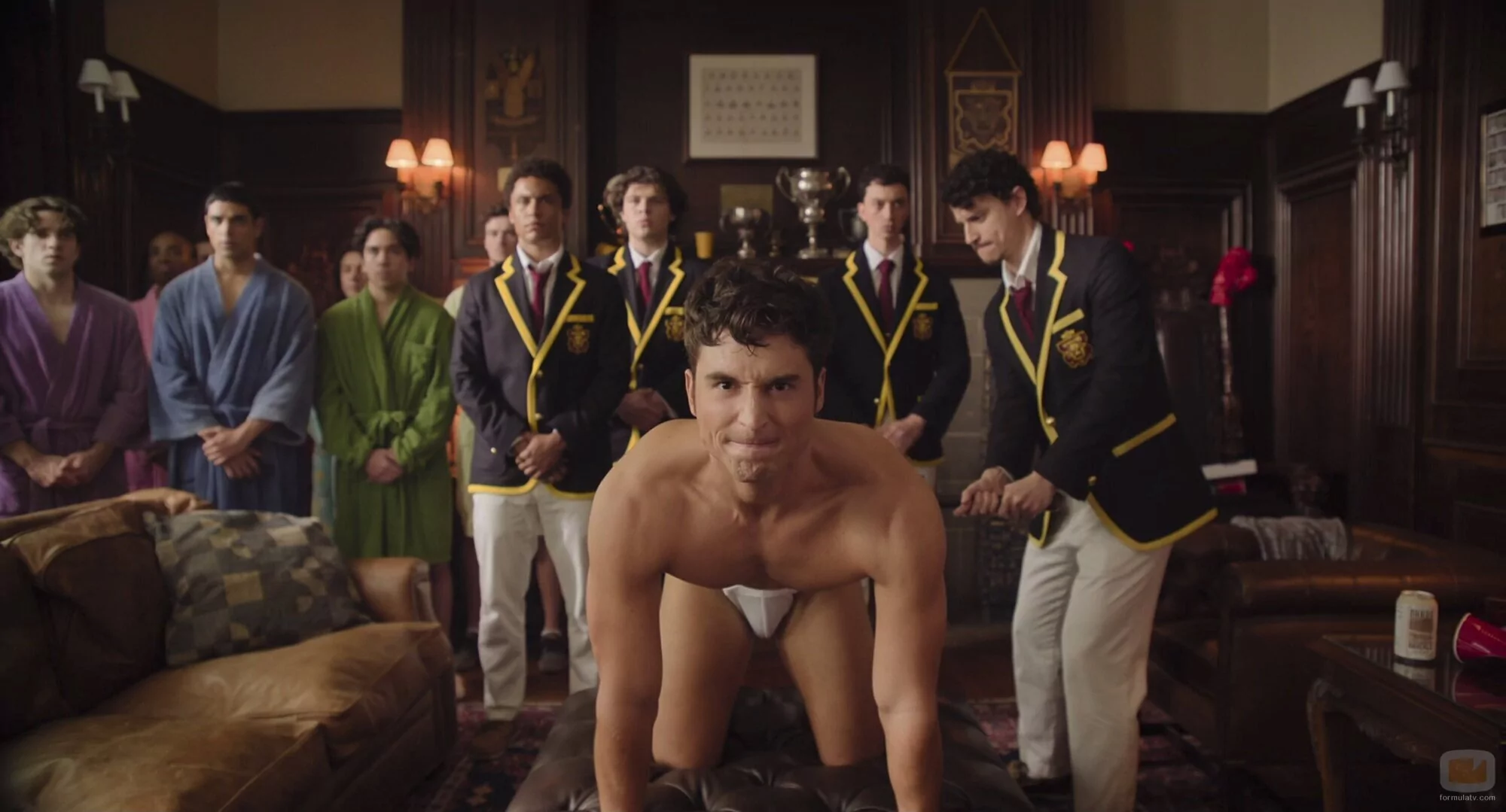 Rish Shah, Benito Skinner, Corteon Moore, Adam DiMarco y Tomaso Sanelli aparecen en una foto del capítulo 1x04 de la serie 'Impostura'.