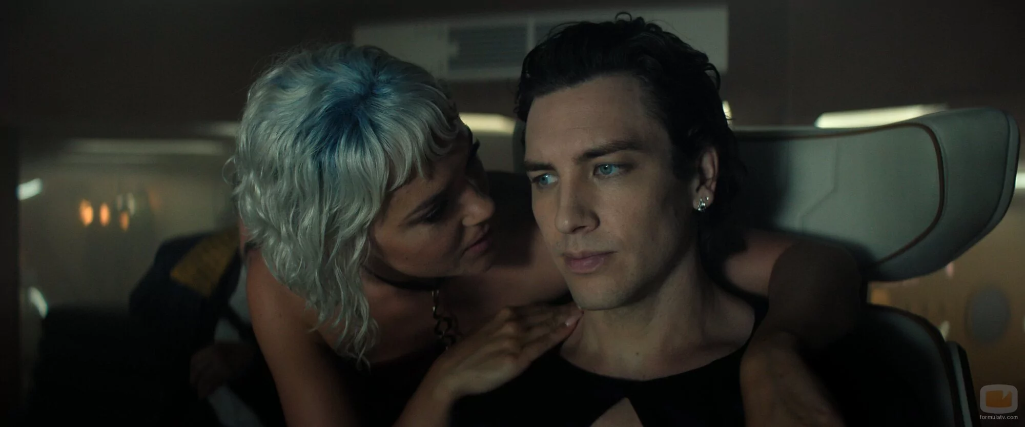 Cody Fern y Synnove Karlsen aparecen en una escena promocional del episodio 'La forma del tiempo' de la serie 'Fundación'.