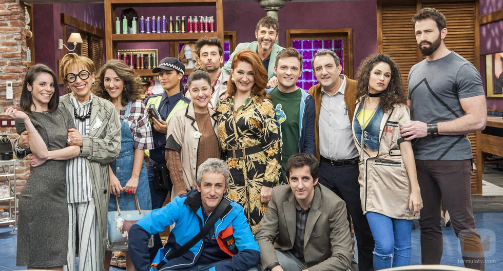 Todos los actores de la serie 'La Pelu' posan para la promoción de la serie de La1. En ella se pueden ver a los actores Chiqui Fernández, Jorge Cucalón, Fernando Gil, Adam Jeziersky, Anna Gras entre otros