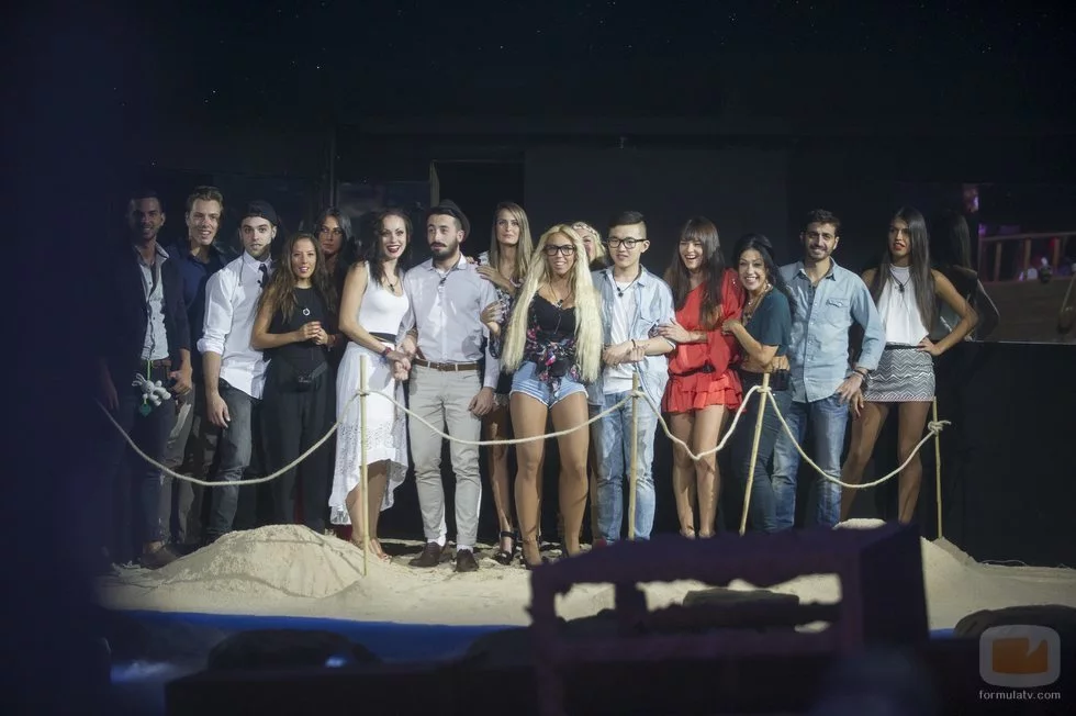Suso, Carlos, Vera, Ivy, Raquel, Niedziela, Aritz, Carolina, Amanda, Marina, Han, Marta, Maite Galdeano, Quique y Sofía Suescun, concursantes iniciales de 'GH 16'.