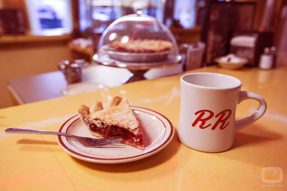 Foto promocional del regreso de la serie dirigida por David Lynch, 'Twin Peaks', en la que aparece la famosa tarta de cerezas.