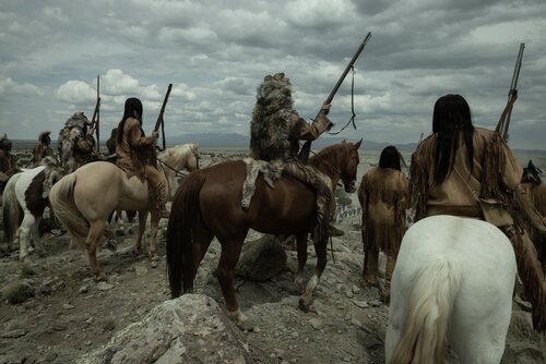 Tokala Black Elk y Derek Hinkey aparecen en una foto del episodio 'Episodio 4' de la serie 'American Primeval'.