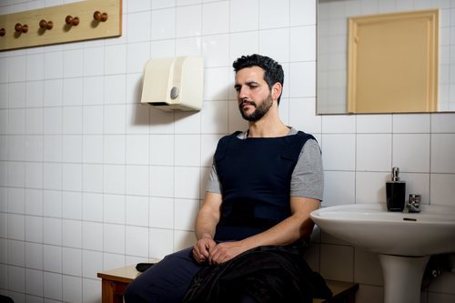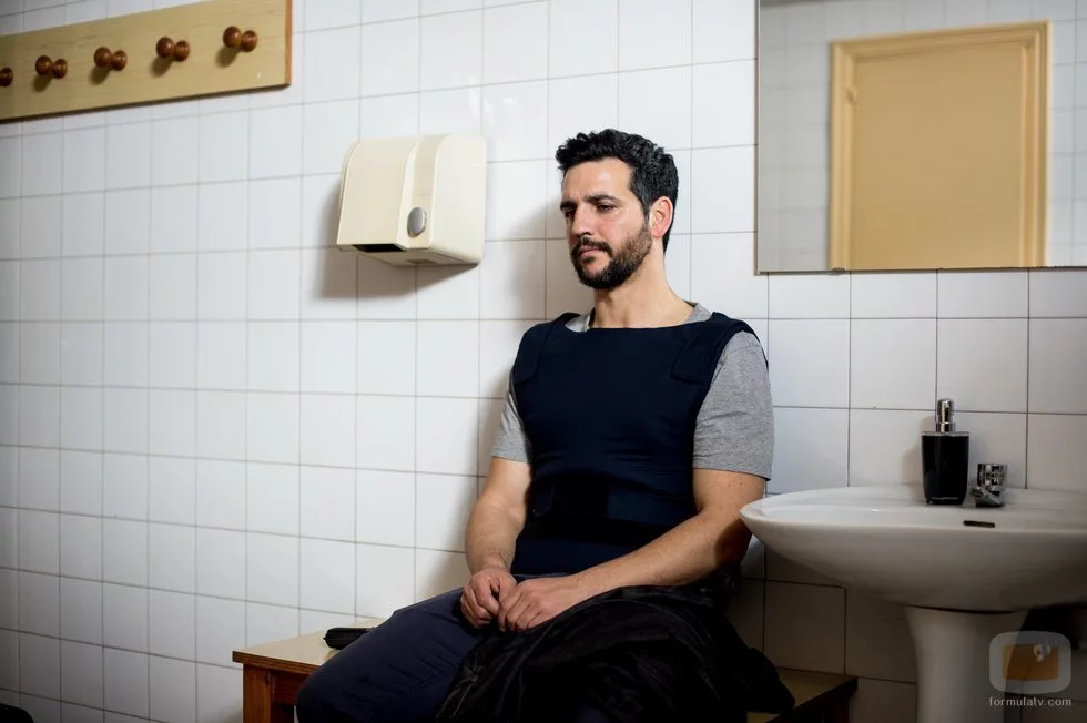 Fran Perea, protagonista de la serie 'Kosta', se encuentra sentado en un baño en una de las escenas de la ficción.