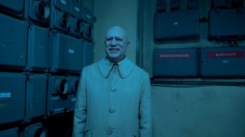 El intérprete Fred Armisen (Tío Fétido) en una escena promocional del capítulo 'La llamada de la tristeza' de 'Wednesday'.