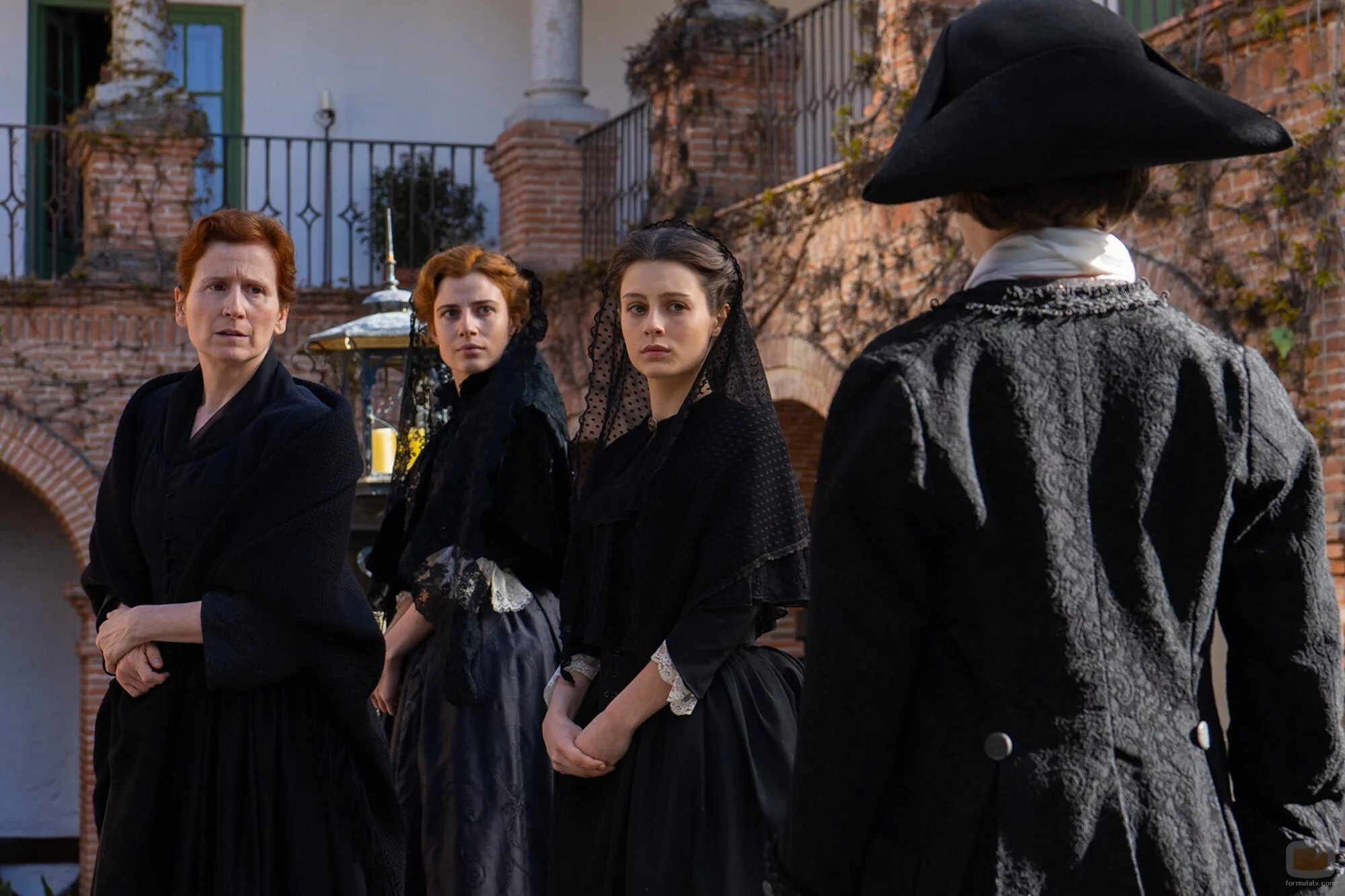 Adriana acude junto a su aya Isabel y sus hermanos Bárbara y Pedrito al funeral celebrado por la muerte de Evaristo, su padre.