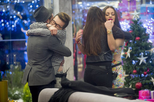 (16x14) Han y Aritz, Marta y Niedziela se abrazan en 'Gran Hermano 16'. Los concursantes están muy unidos y no quieren que ninguno se vaya de la casa