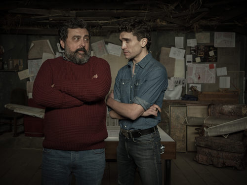Los actores Paco Tous y Jaime Lorente posan en las fotos promocionales del thriller policiaco de Antena 3 titulado 'La Casa de Papel'.