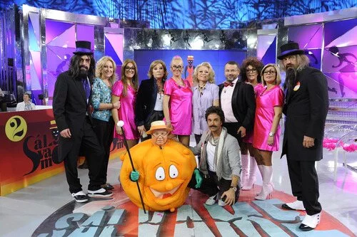 Posado de parte de los colaboradores de 'Sálvame' con Mayra Gómez Kemp por el segundo aniversario del programa producido por La Fábrica de la Tele.