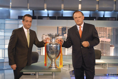 Pedro Piqueras y J.J. Santos posan con el trofeo de la Selección.