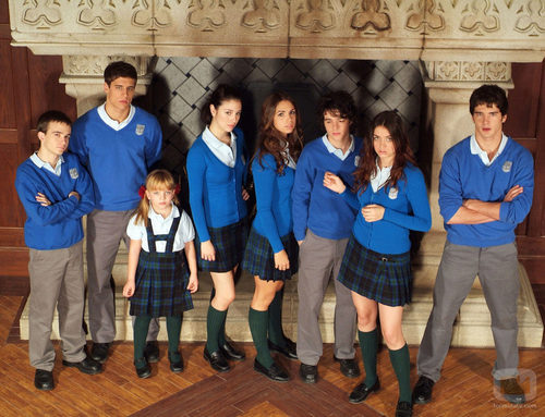 Los alumnos junto a la chimenea de 'El internado'