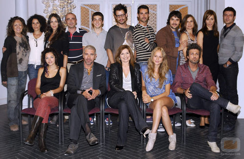 Reparto de la serie '90-60-90' de Antena 3, protagonizada por Esmeralda Moya y Jesús Olmedo.