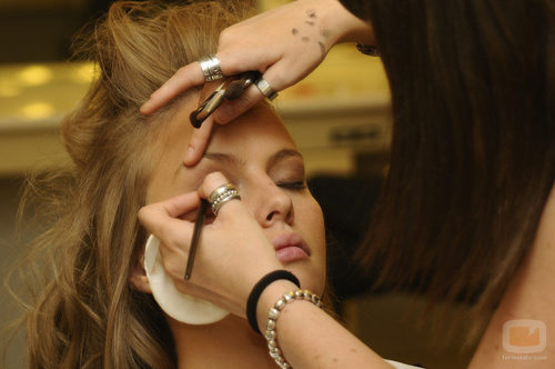 Esmeralda Moya en la sesión de maquillaje de '90-60-90, diario secreto de una adolescente' de Antena 3.