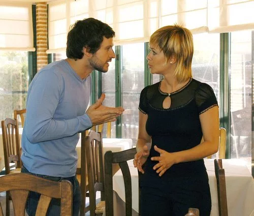 Diego Martín y María Adánez dan vida a Carlos y Lucía en 'Aquí no hay quien viva', la mítica serie de Antena 3. Ambos mantienen un ir y venir de rupturas y reconciliaciones amorosas.
