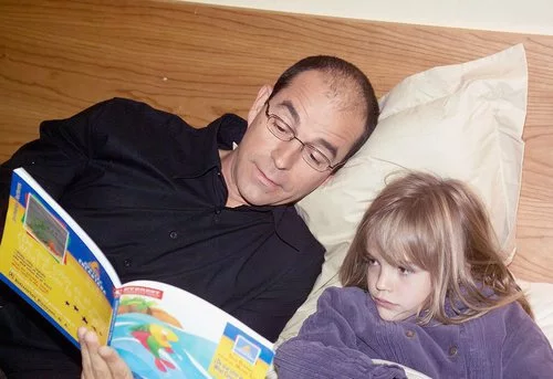 Elisa Drabben es la nieta de Doña Concha en 'Aquí no hay quien viva' y aparece junto a su padre, Armando, leyendo un cuento.
