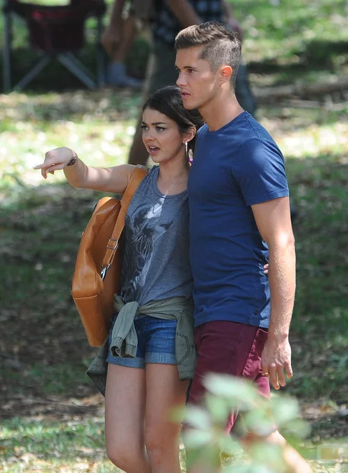 Sarah Hyland agarrada de un chico durante su rodaje en Australia