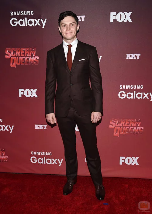 Evan Peters, con traje y corbata, en el preestreno de 'Scream Queens'