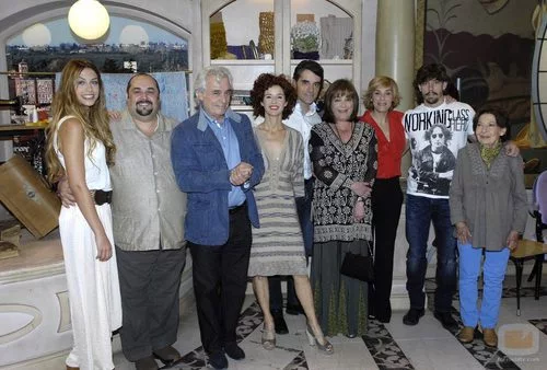 Nazaret Aracil, Juan Manuel Cifuentes, Luis Marco, Marta Belenguer, Xisco Segura, Carmen Maura, Anabel Alonso, Adrián Lastra y Alicia Hermida posan en la rueda de prensa.