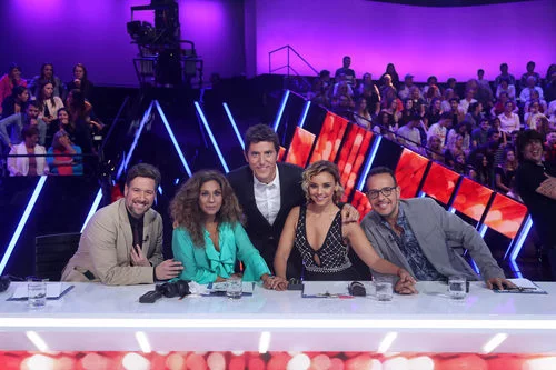 El jurado de 'Tu cara me suena' con el humorista y periodista Manel fuentes durante la segunda gala de la sexta edición.