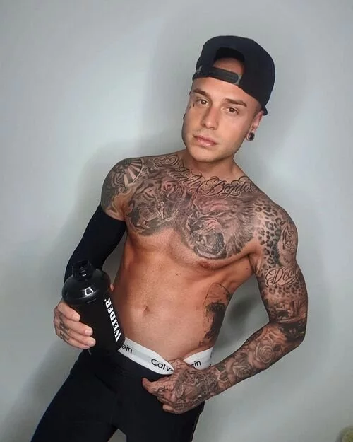 El actor de 'Física o química' muestra su trabajado torso al desnudo, dejando ver todos sus tatuajes, durante su entrenamiento.
