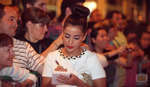 Inma Cuesta firmó autógrafos a sus fans cuando pasó por la alfombra roja del Festival de Vitoria.