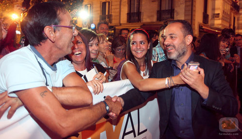 Javier Gutiérrez se hace una foto con sus fans en la alfombra roja del Festival de Vitoria.
