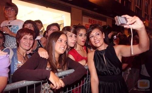 Pepa Aniorte en la alfombra roja del Festival de Vitoria haciéndose una foto con sus fans.