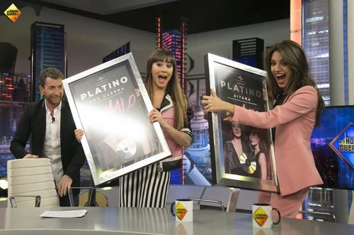 AitanaWar acudieron a 'El hormiguero', donde Pablo Motos les entregó el Disco de Platino por la canción "Lo Malo".