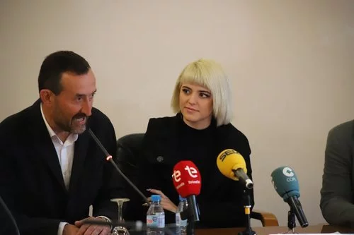Alba Reche, en el Ayuntamiento de Elche junto al alcalde