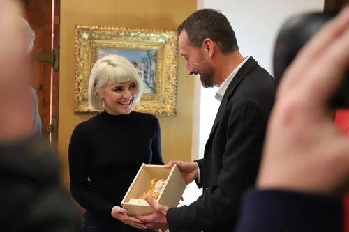 Alba Reche recibe como obsequio una miniatura de la Dama de Elche