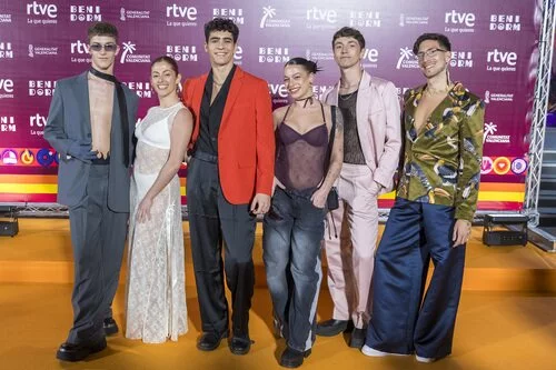 Quique Niza junto a su equipo en la alfombra naranja del Benidorm Fest 2024