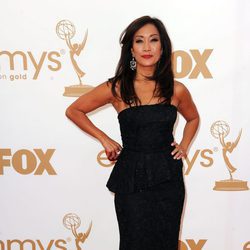Jenna Ushkowitz, Tina en 'Glee', en la Alfombra Roja de los Emmy 2011