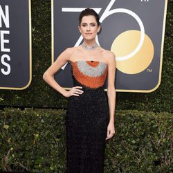 Rachel Brosnahan posa en la alfombra roja de los Globos de Oro 2018