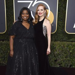 Octavia Spencer y Jessica Chastain posan en la alfombra roja de los Globos de Oro 2018