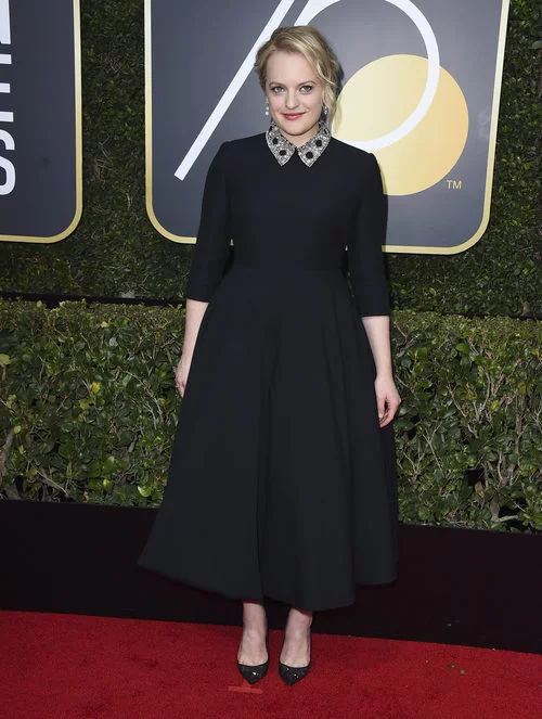 Elisabeth Moss posa en la alfombra roja de los Globos de Oro 2018