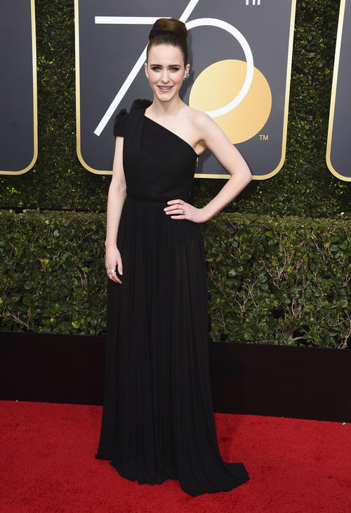 Rachel Brosnahan posa en la alfombra roja de los Globos de Oro 2018