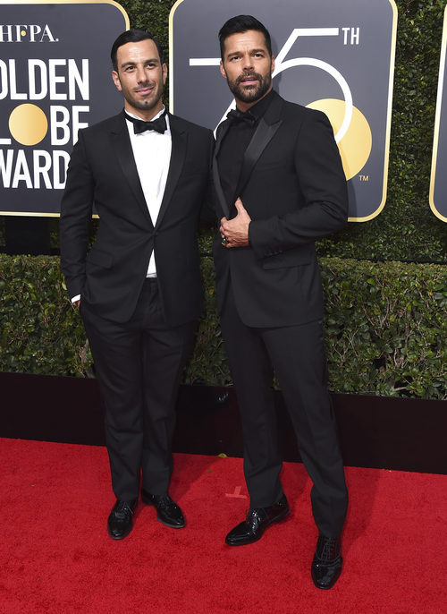 Ricky Martin posa junto a su pareja en la alfombra roja de los Globos de Oro 2018