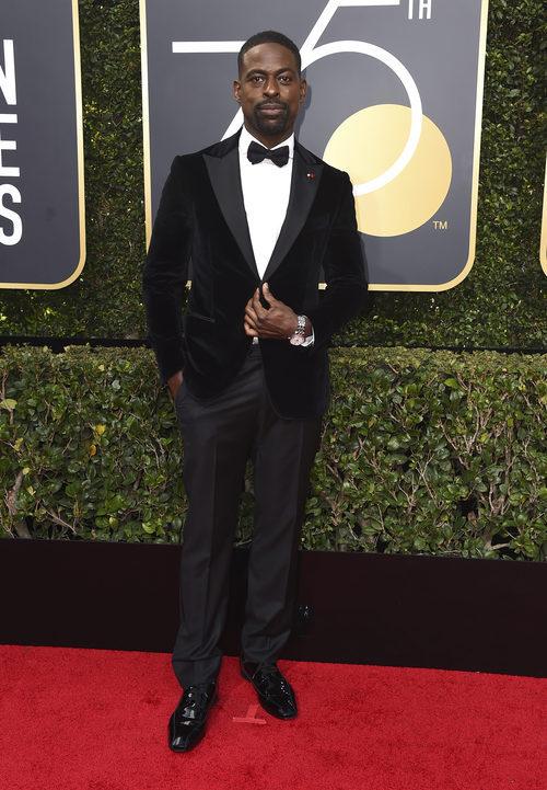 Sterling K. Brown posa en la alfombra roja de los Globos de Oro 2018