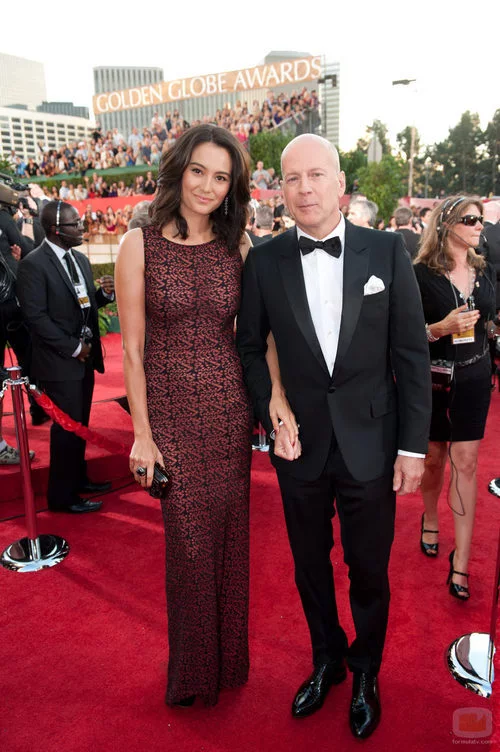 El actor Bruce Willis con su mujer Emma Hemming en la alfombra roja de la 68 edición de los Globos de Oro.