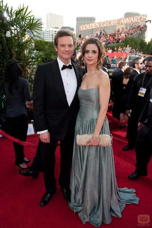 El actor Colin Firth con su mujer Livia Giuggioli en la 68 edición de los Globos de Oro.