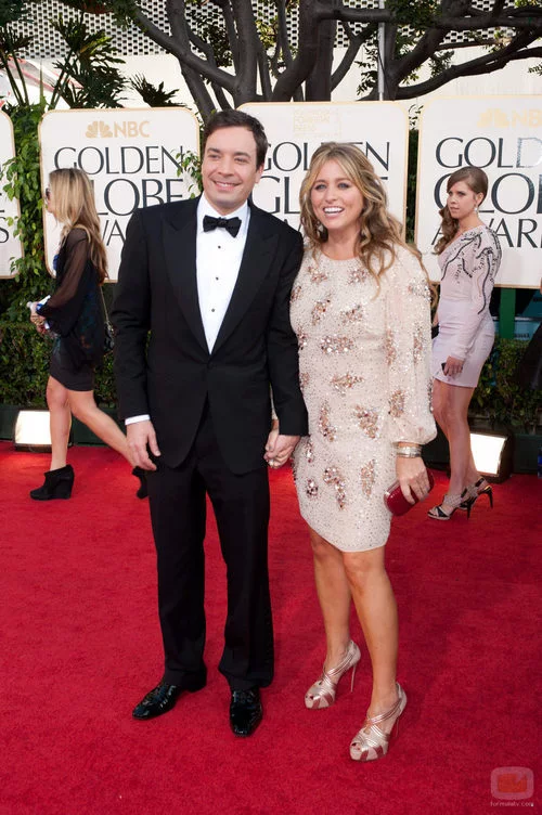 El humorista Jimmy Fallon con su mujer Nancy Juvonen en la 68 edición de los Globos de Oro 2011.