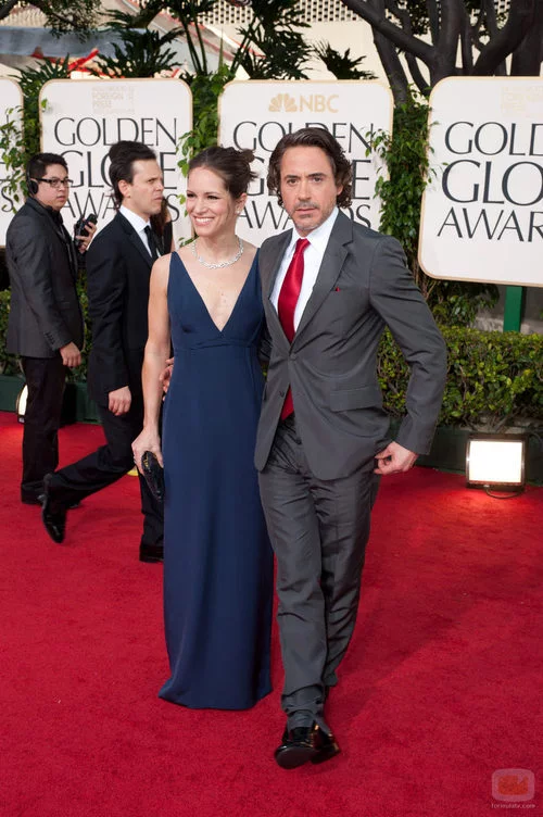 El actor Robert Downey Jr. con su mujer Susan en la alfombra roja de la 68 edición de los Globos de Oro.