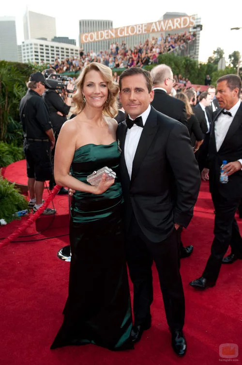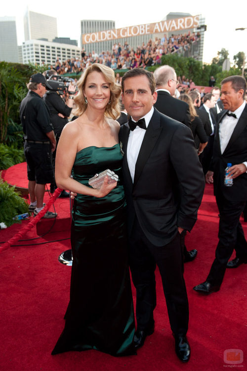 El actor Steve Carell de 'The Office', con su mujer Nancy, en la alfombra roja de la 68 edición de los Globos de Oro.