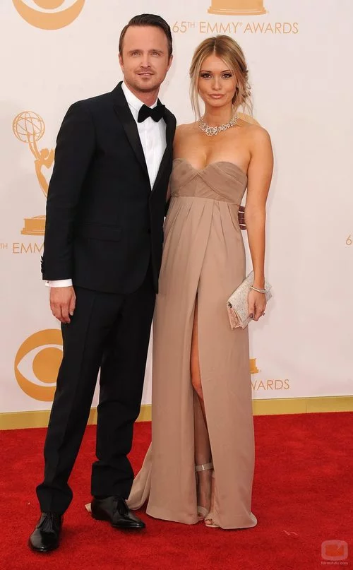 Aaron Paul y Lauren Parsekian en la alfombra roja de los Emmy 2013