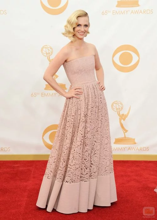 La actriz January Jones de la serie 'Mad Men', a su llegada a la alfombra roja de la 65 edición de los Premios Emmy.
