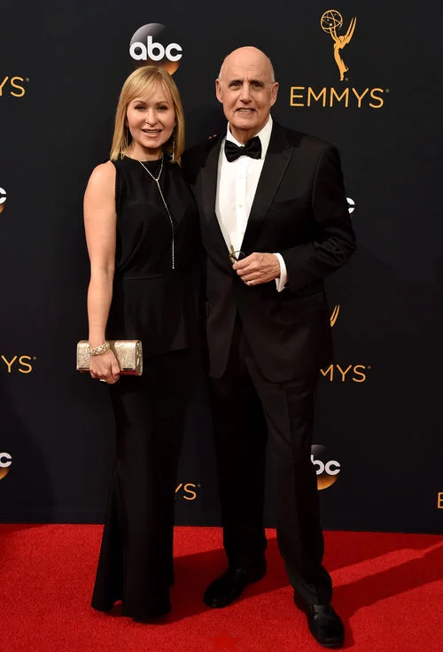 Jeffrey Tambor, ganador por segundo año consecutivo del galardón a Mejor Actor de Comedia por su papel de Maura en 'Transparent', posa junto a su mujer Kasia Ostlun en la alfombra roja de la 68 edición de los Premios Emmy 2016.