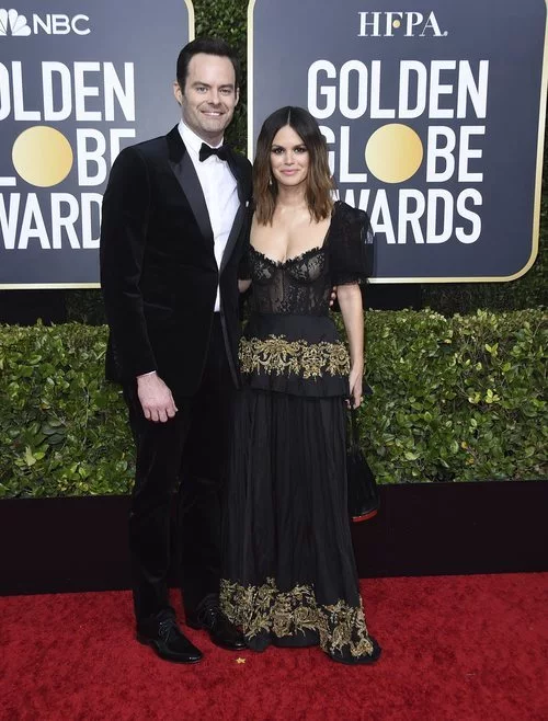 Bill Hader y Rachel Bilson en la alfombra roja de los Globos de Oro 2020