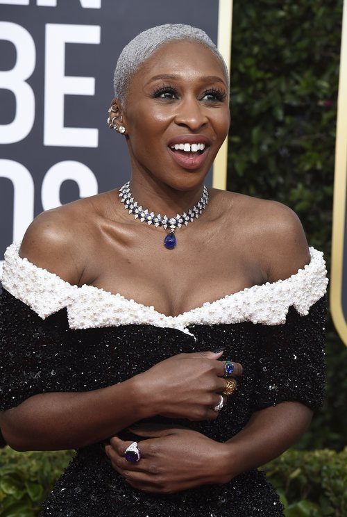Cynthia Erivo en la alfombra roja de los Globos de Oro 2020