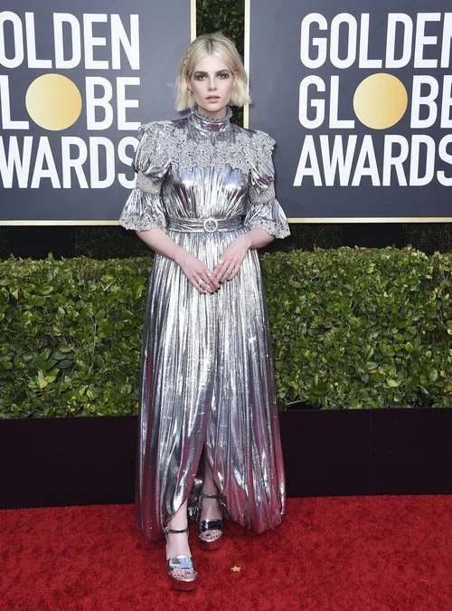 Lucy Boynton en la alfombra roja de los Globos de Oro 2020