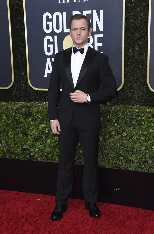 Taron Egerton en la alfombra roja de los Globos de Oro 2020